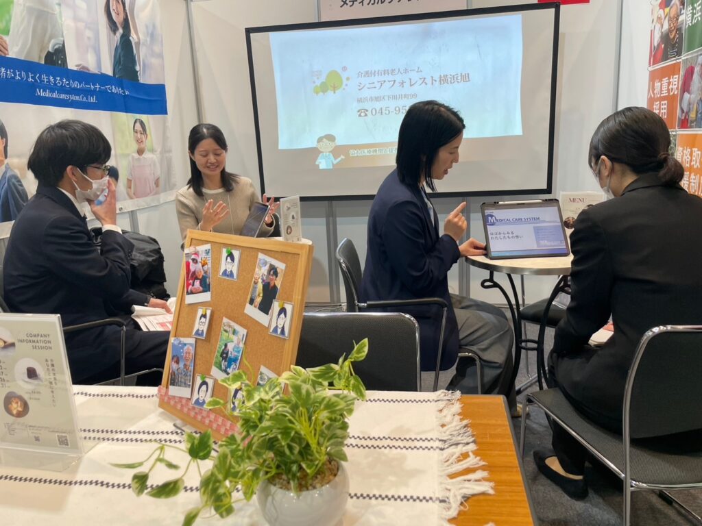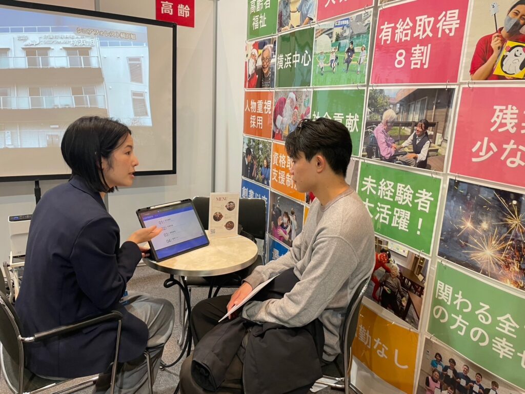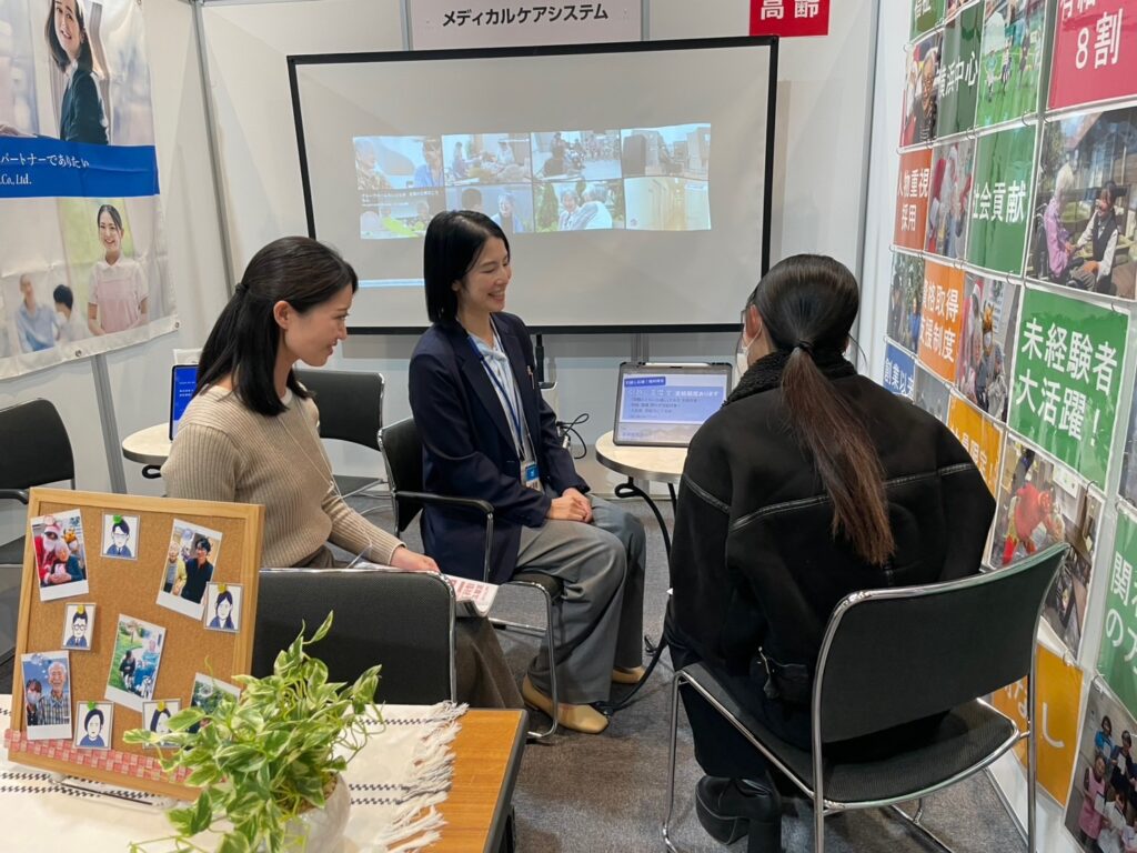 ブースでは、多くの学生の皆さまにお立ち寄りいただき、介護業界への関心や将来の働き方について、直接お話しすることができました。学生の皆さまの真剣な姿勢や熱意に触れ、私たちにとっても大変貴重で有意義な時間となりました。