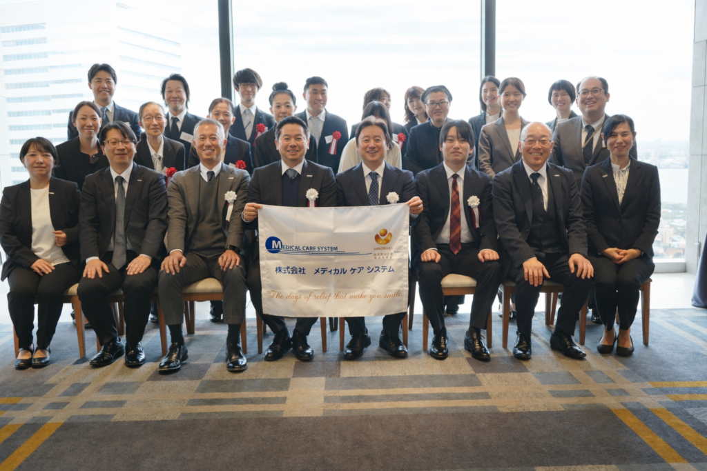 (左)本社ビル前で参加者全員で記念撮影 (中)本社セミナールームで米山社長自らご講義 (右)経営理念を理論的に丁寧に説明していただきました!