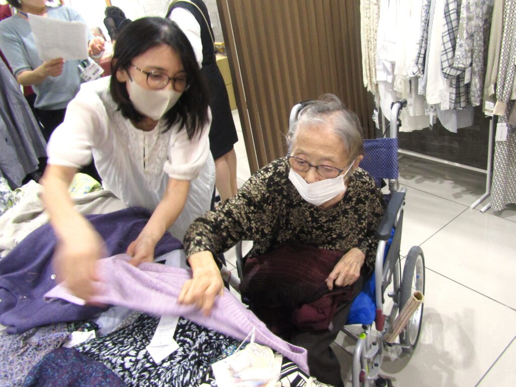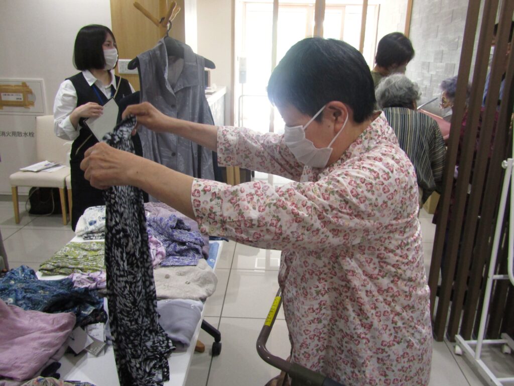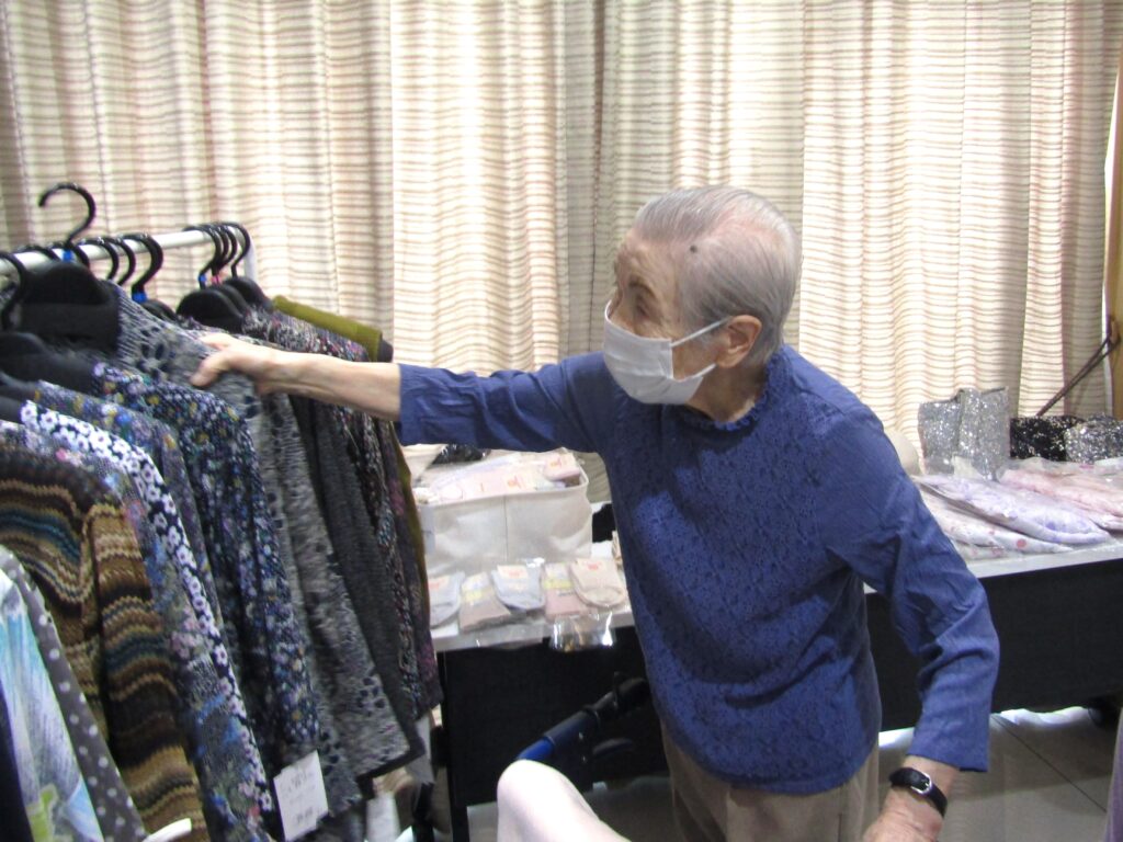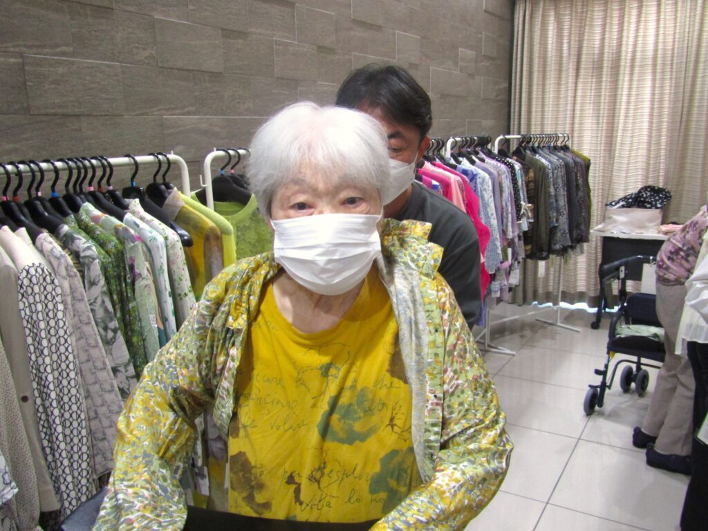 鏡に合わせたり、試着をしたりと、色とりどりのお洋服を吟味されるご入居者様のご様子が伺えました♬