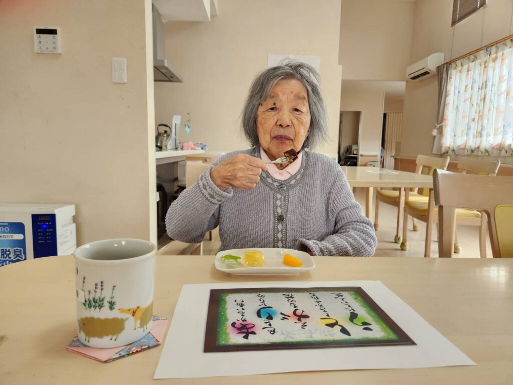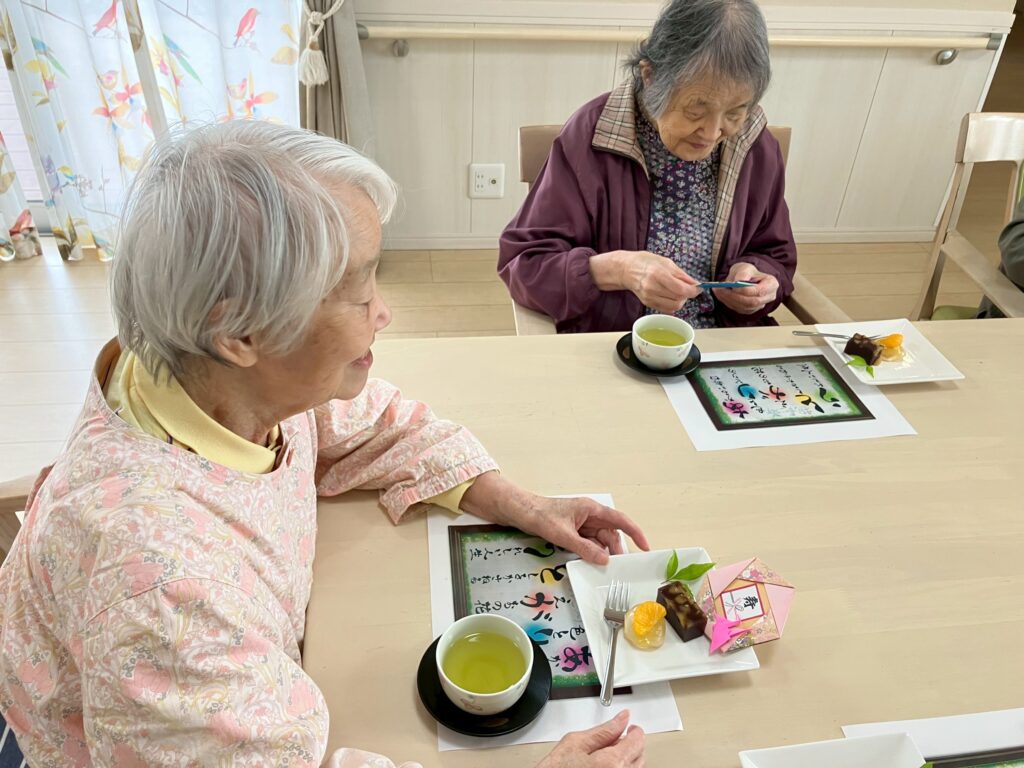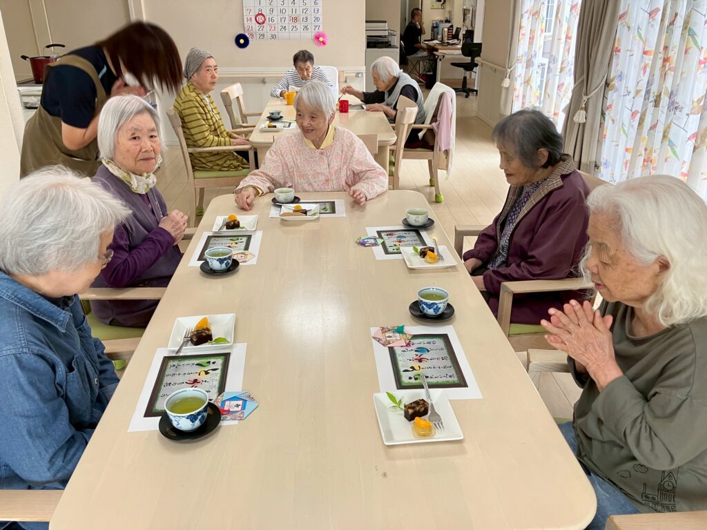 敬老の日に、皆様で日本茶と和菓子を召し上がり、楽しい午後のひと時を過ごされました!