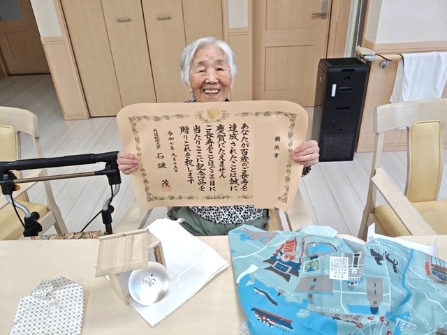 百寿を迎えたご入居者様が、石破元首相よりお祝いをいただきました!