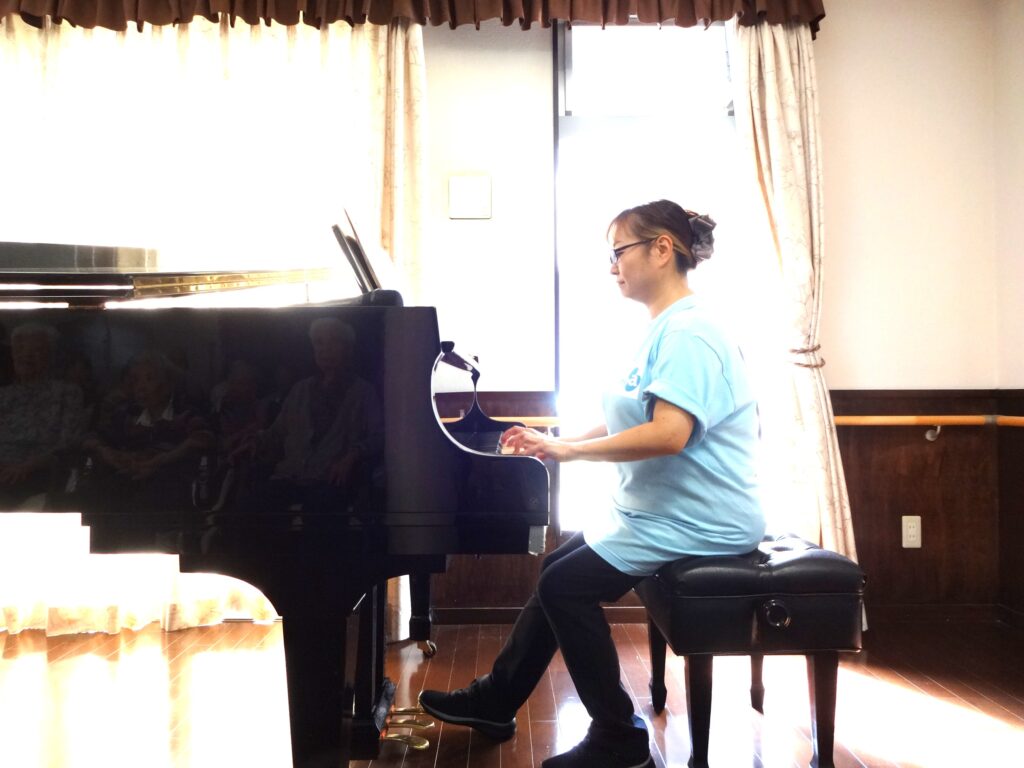 今回は、以前施設にご入居されていたご親族様のボランティアによるピアノ演奏と歌唱会を楽しみました!