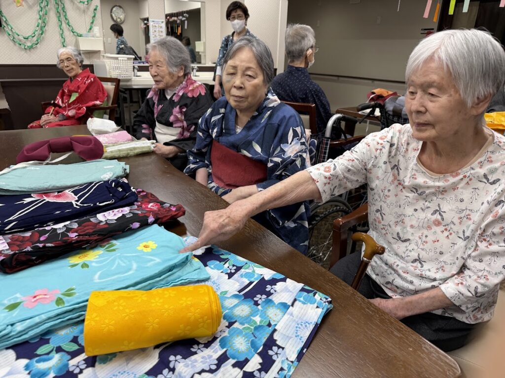 入居者の皆様には色とりどりの浴衣をお召しいただき、華やかな雰囲気に包まれました。