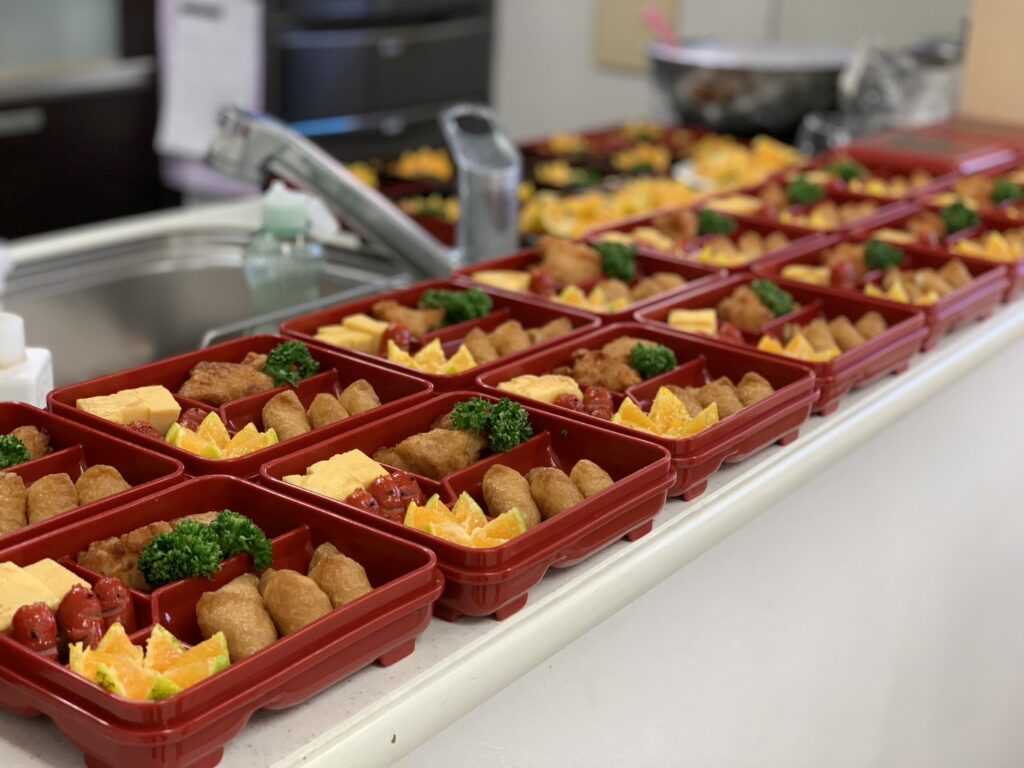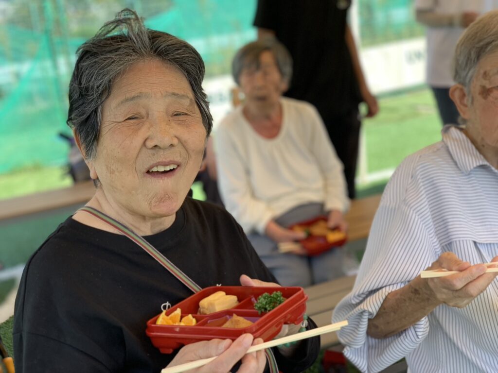 競技のあとは、職員手作りのお弁当を外でいただき、秋の風を感じながらの楽しい昼食タイム。