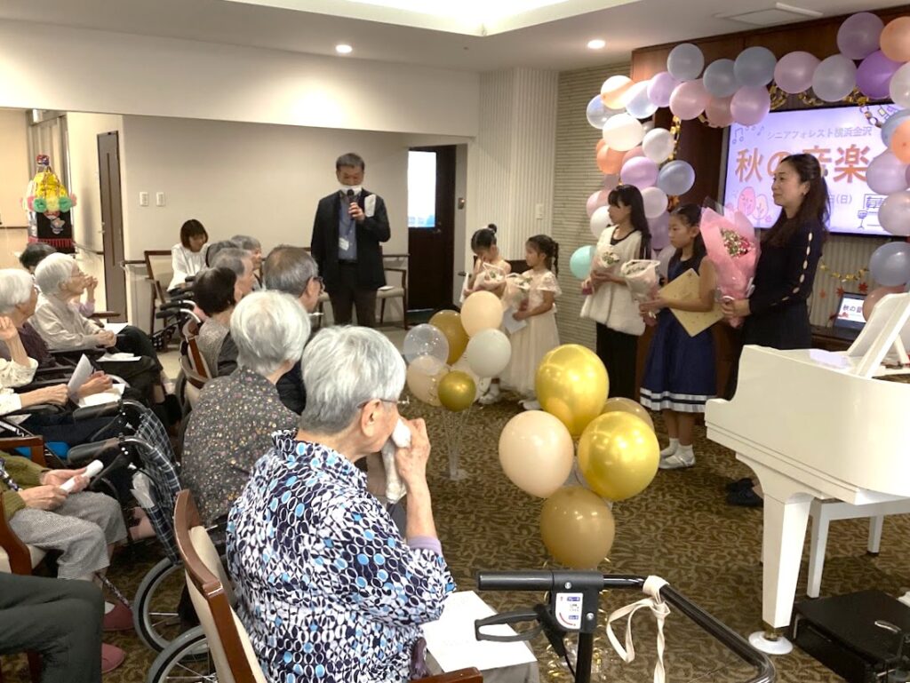 ご入居者様に向けて美空ひばりさんの「川の流れのように」を演奏いただいた際は、感動で涙を流される方もいらっしゃいました。