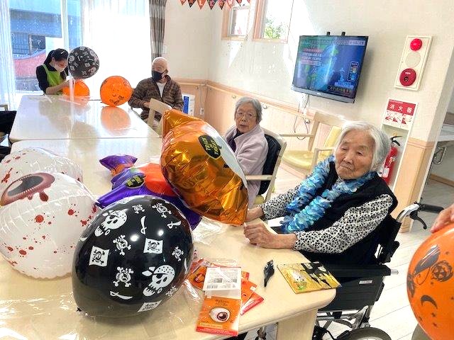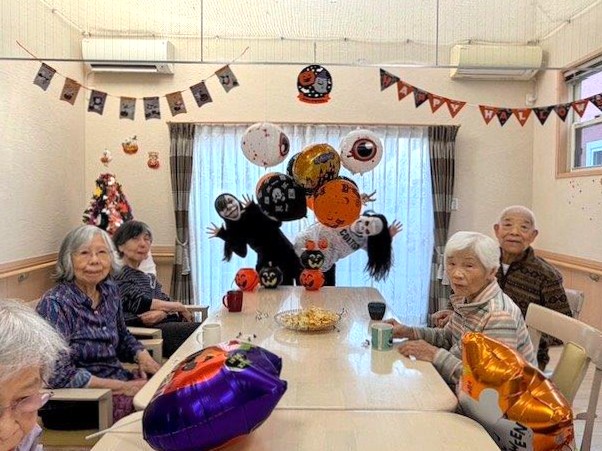ハロウィンの飾りをご入居者様と一緒に買いに行き、皆さんで飾りつけをしました!