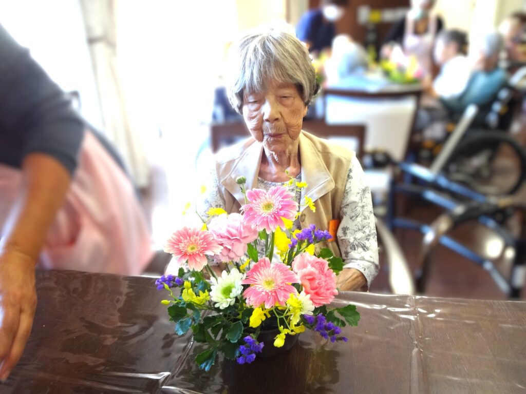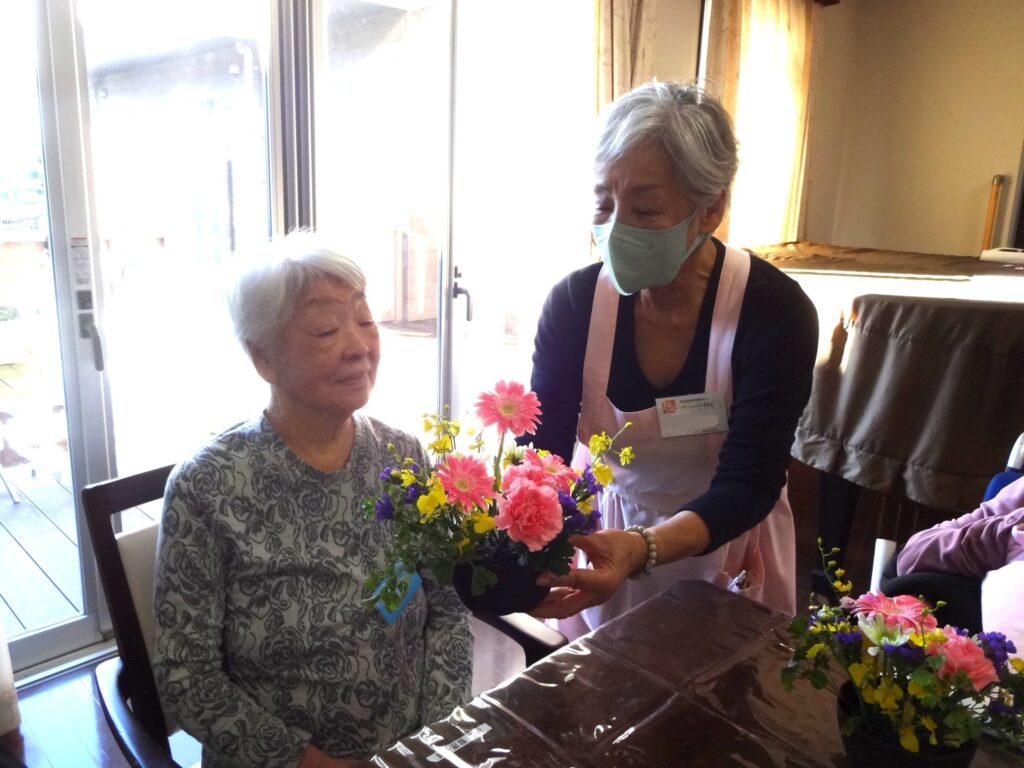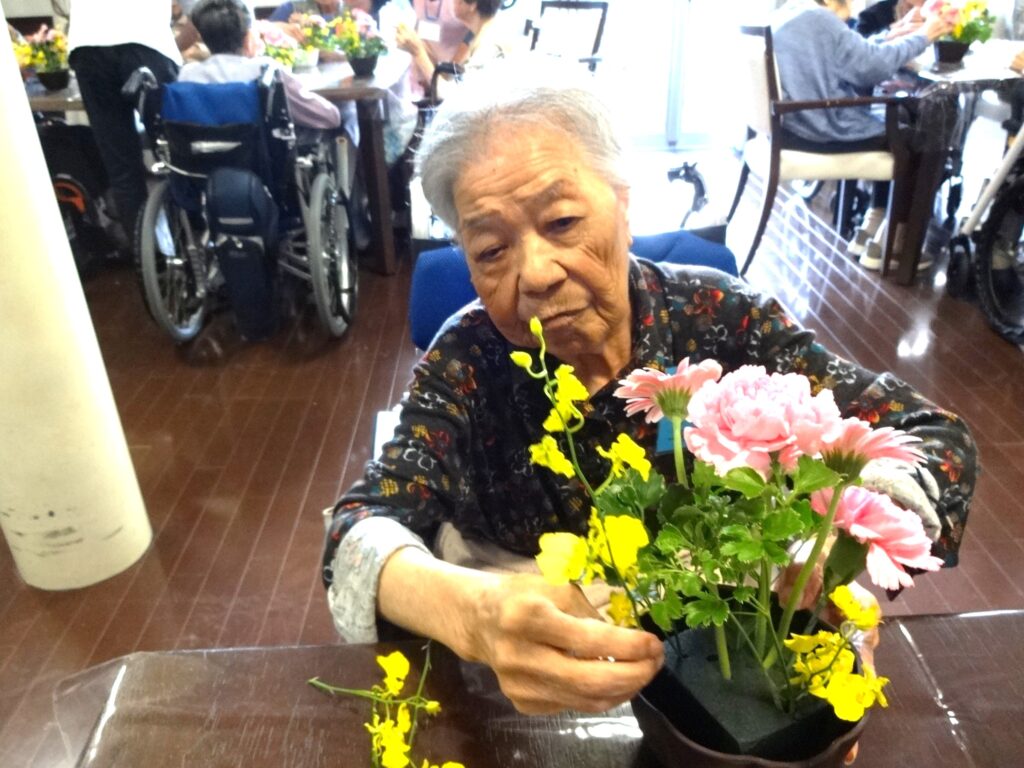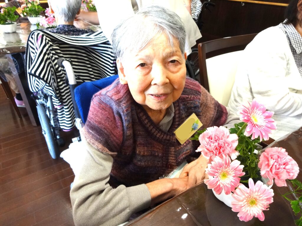 フラワーセラピーの日は、皆様お花に集中されて、華やかな気持ちで取り組まれています。