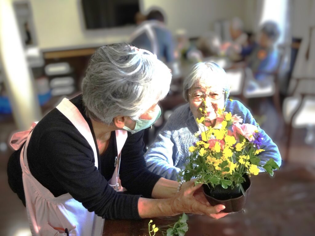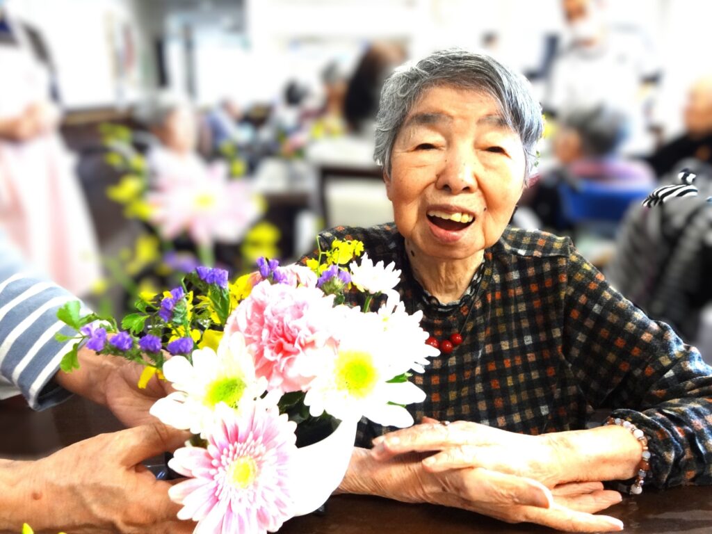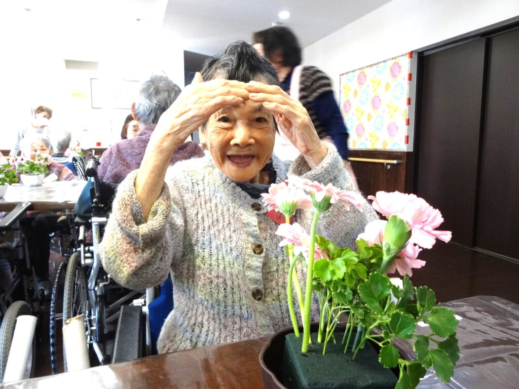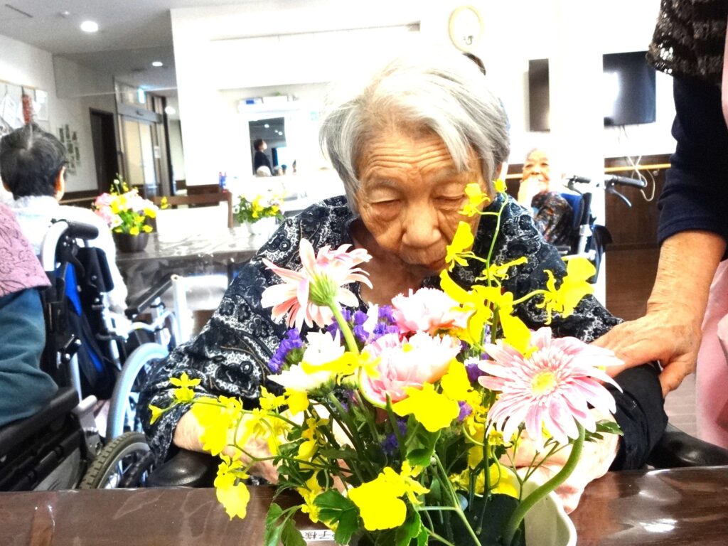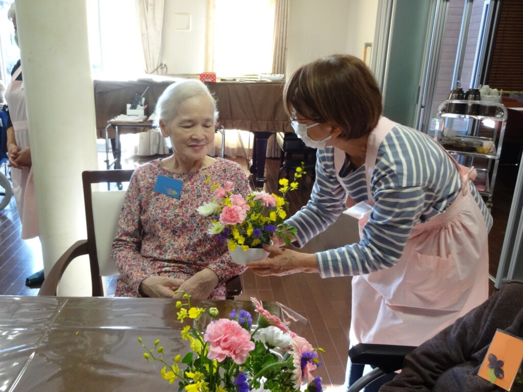 フラワーセラピーの日は、皆様お花に集中されて、華やかな気持ちで取り組まれています。