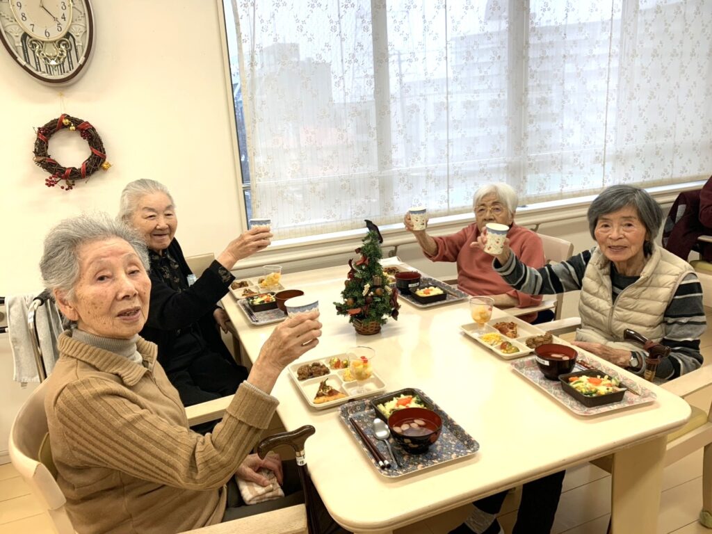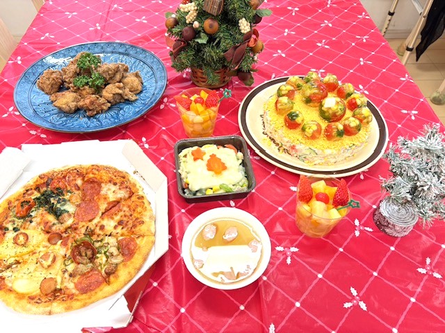 食べることが大好きな皆様のために、職員が心を込めて手作りしたご馳走とケーキをご用意しました。