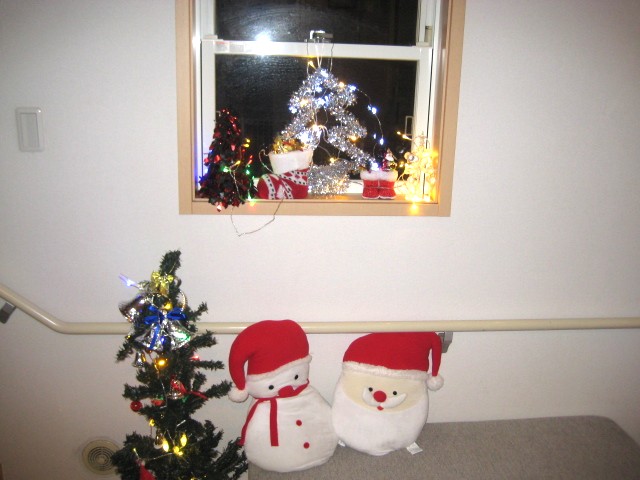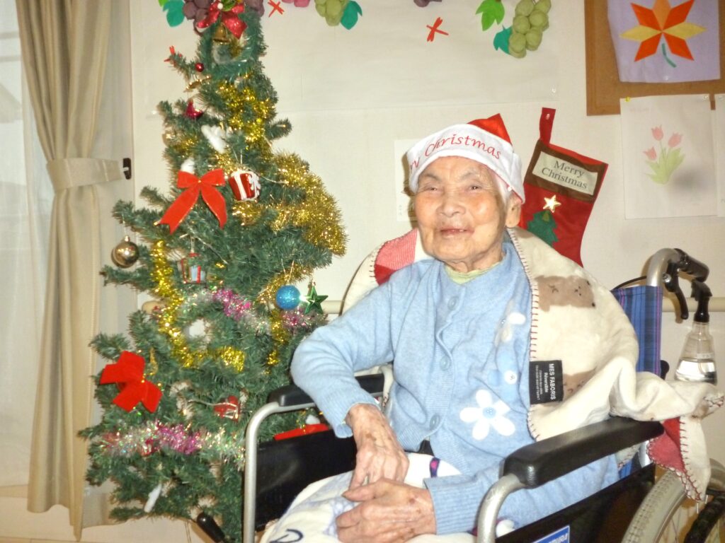 心が和む温かみがある飾り付けを施し、サンタの帽子姿で記念撮影!