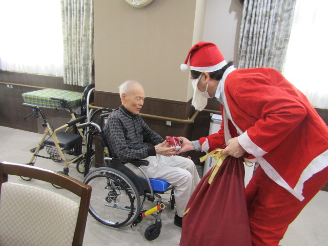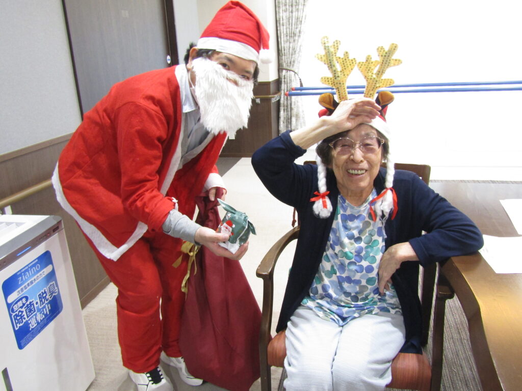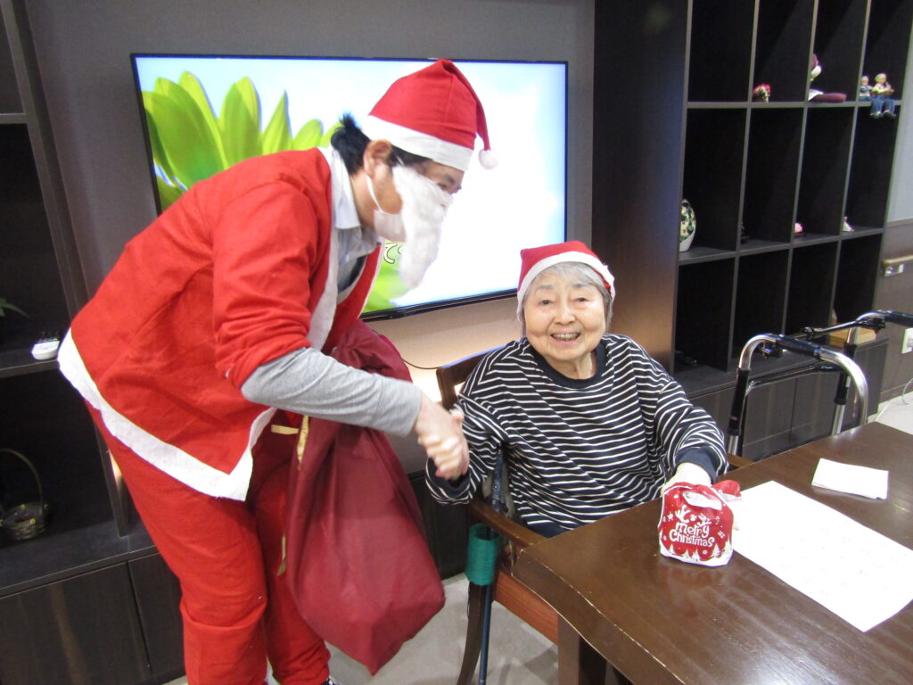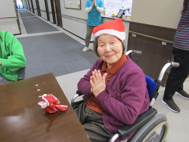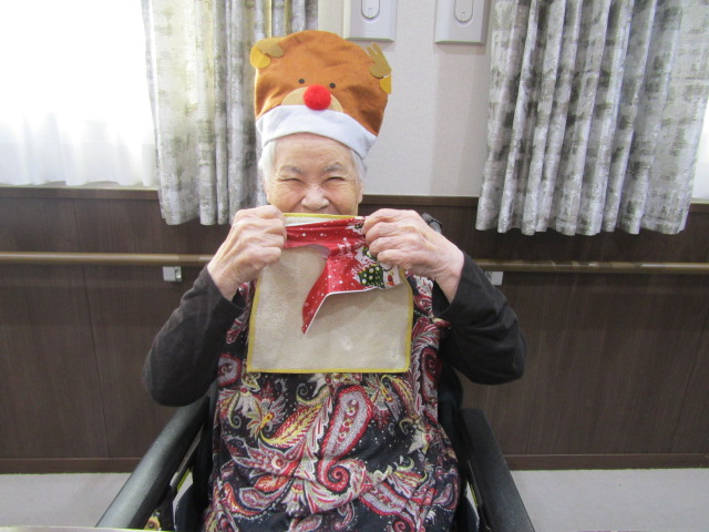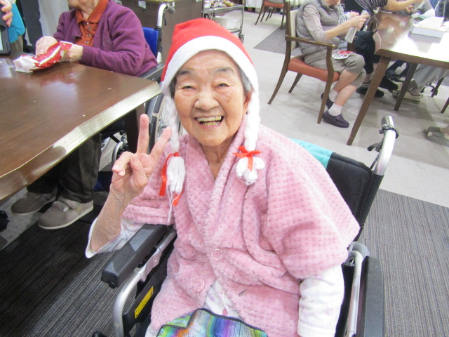 職員手作りのおやつを食べ、サンタさんからのプレゼントももらい、たくさんの笑顔が溢れていました。