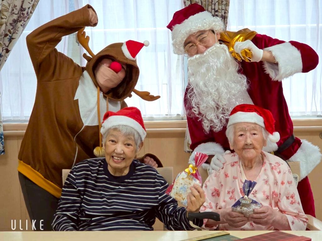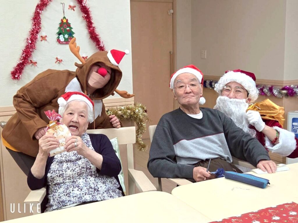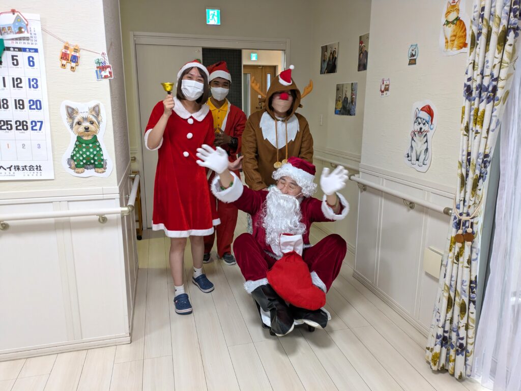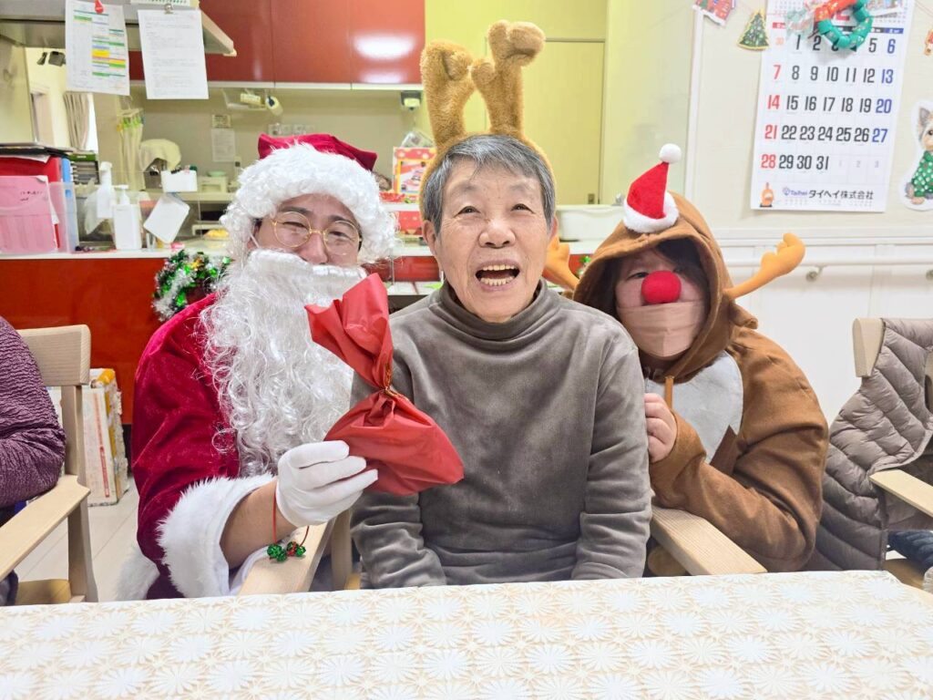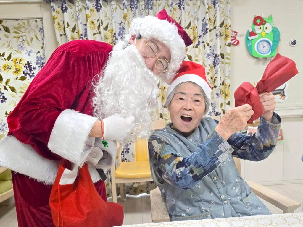 つるみサンタクロースから皆様へクリスマスプレゼントをお渡しし、笑顔で記念撮影をしました!