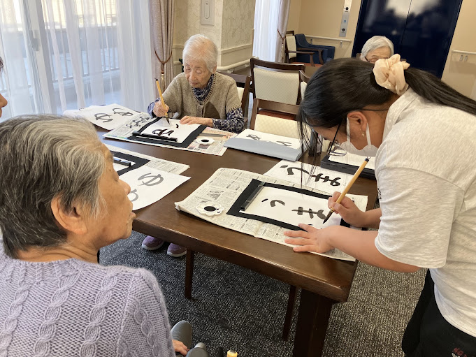 「最近は書いていないから上手く書けないよ」と話されていた皆様でしたが、いざ筆を持つと真剣に見事な文字を書かれていました。