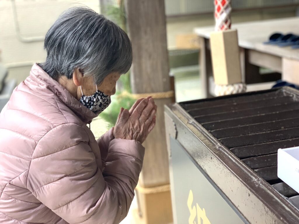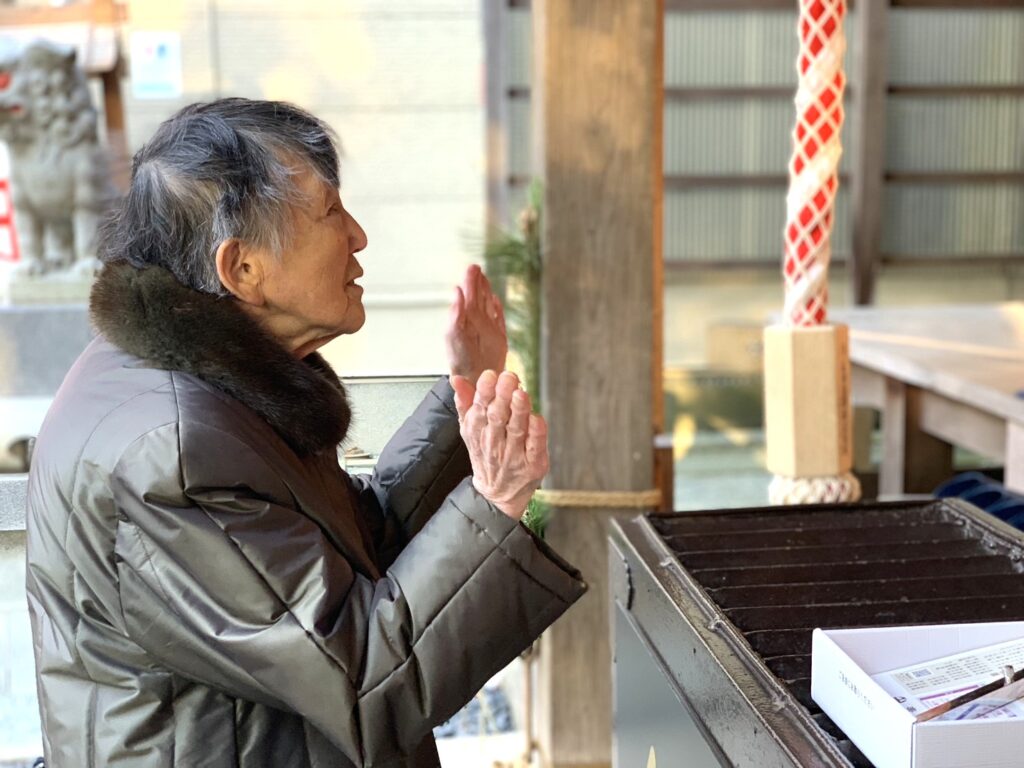お賽銭をそっと入れ、手を合わせ、それぞれの想いを胸にお願い事をする姿は、とても穏やかであたたかい時間でした。