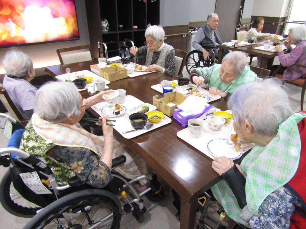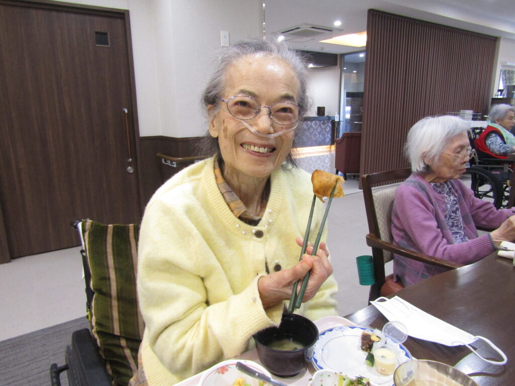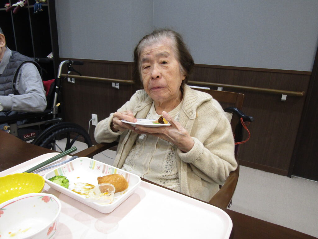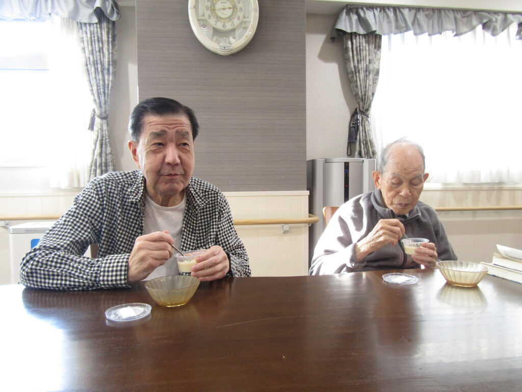 お手玉で「鬼は外、福は内」と大きな声で鬼退治の後は、手作りの豆乳プリンを皆様で召し上がりました。