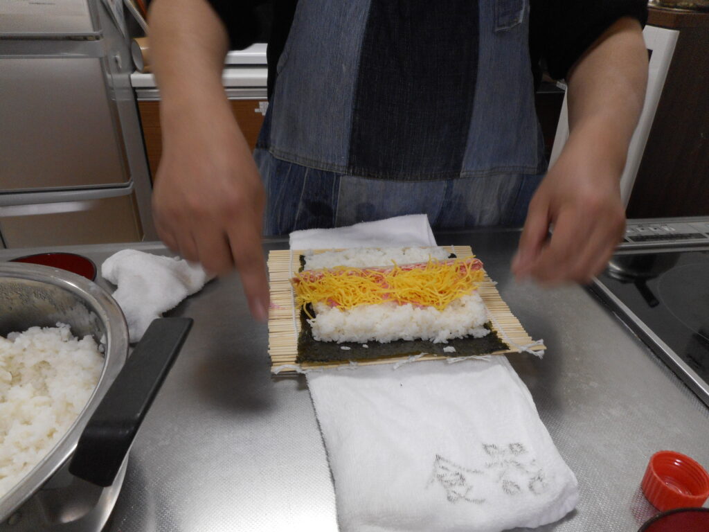 恵方巻を巻くのはとても難しかったです。