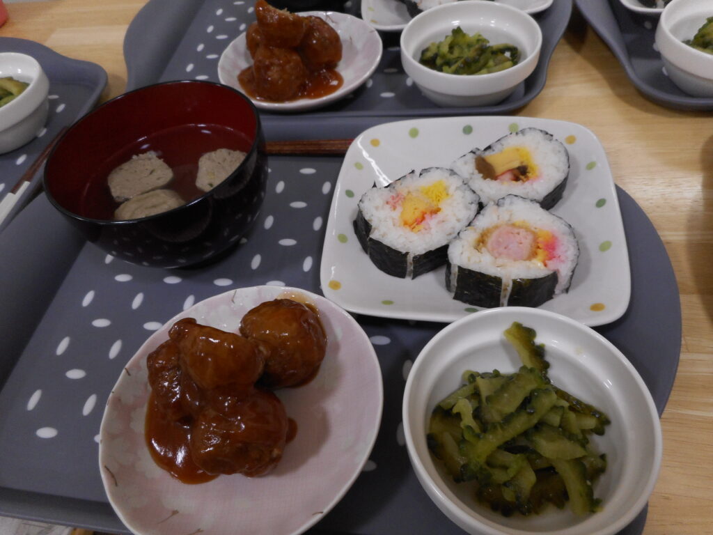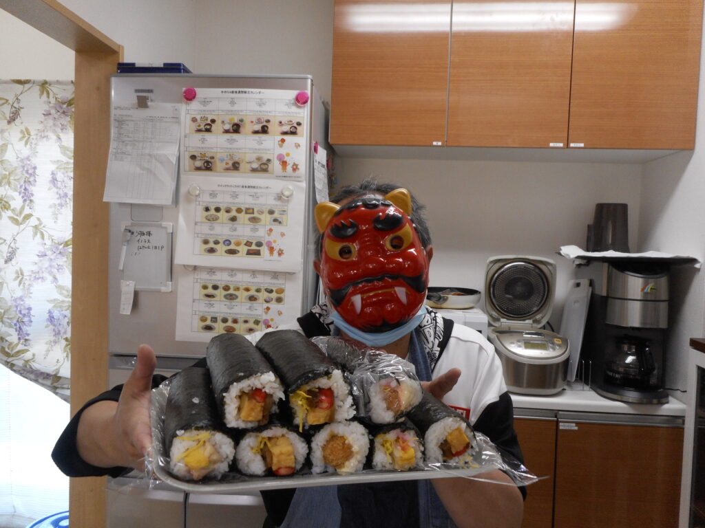 節分のレクリエーションで恵方巻を作って食べました。