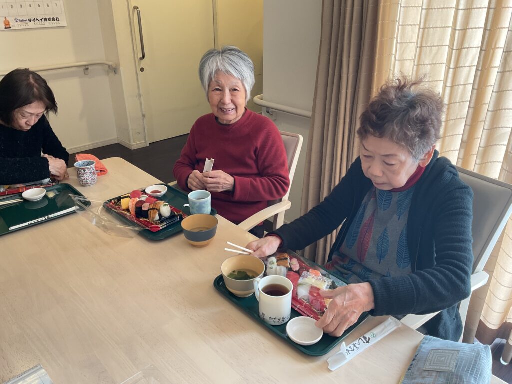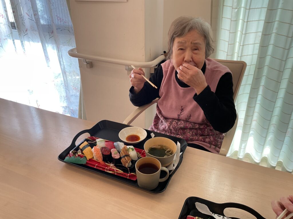 昼食にはリクエストの多かった握り寿司をご用意すると美味しそうに召し上がっていらっしゃいました。