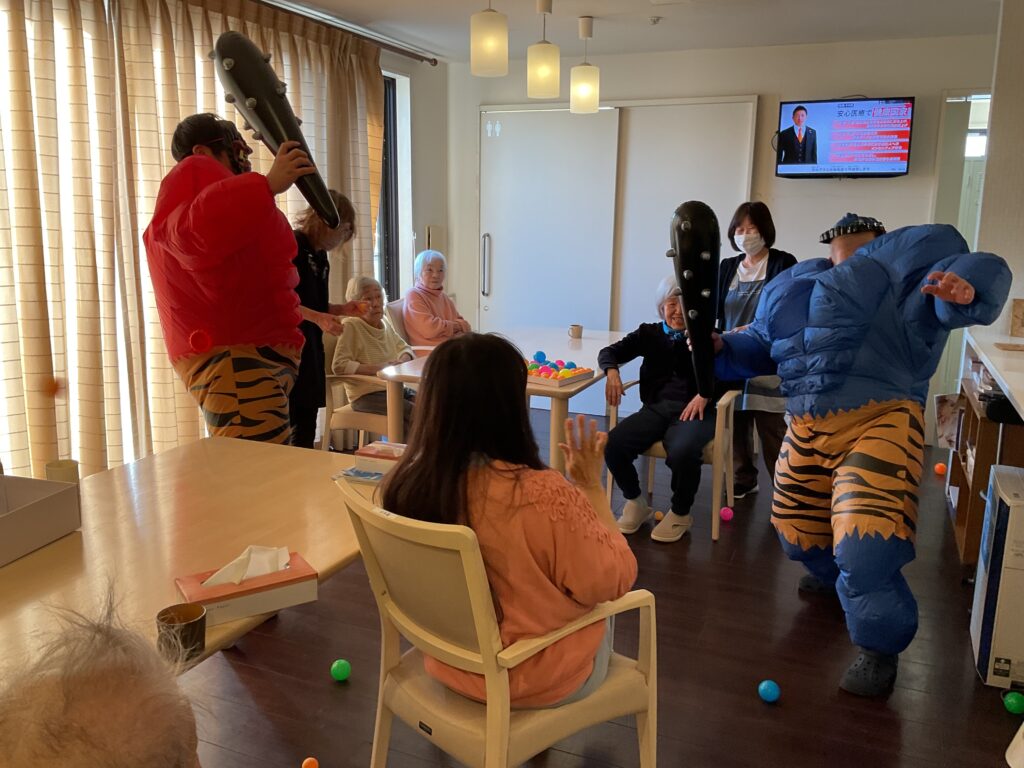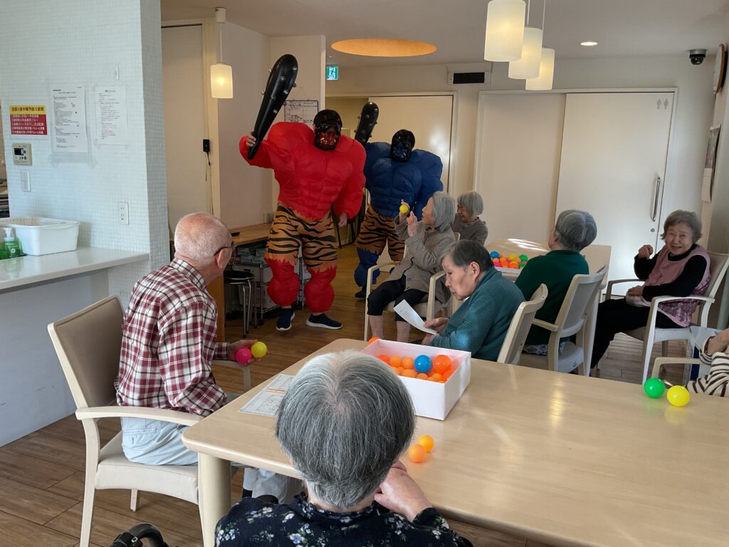 大きな赤鬼と青鬼が突然現れ、皆様びっくりされていましたが、