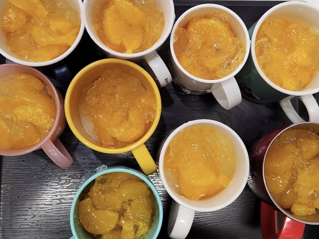 ご入居者様にカルピスみかんゼリーを作っていただきました。