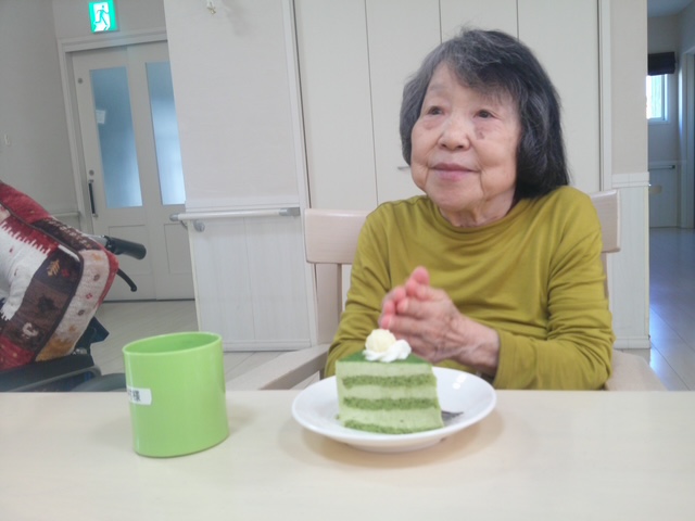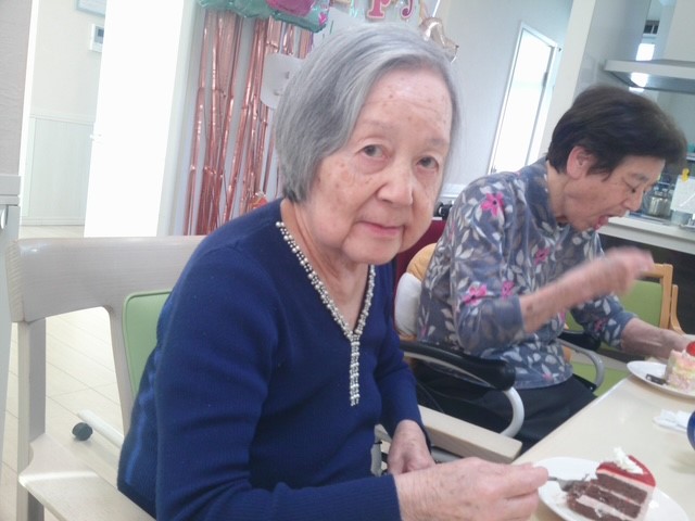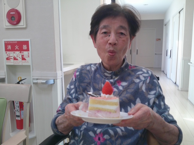 入居者様、職員で歌を歌い、その後ケーキを食べてお祝いしました。