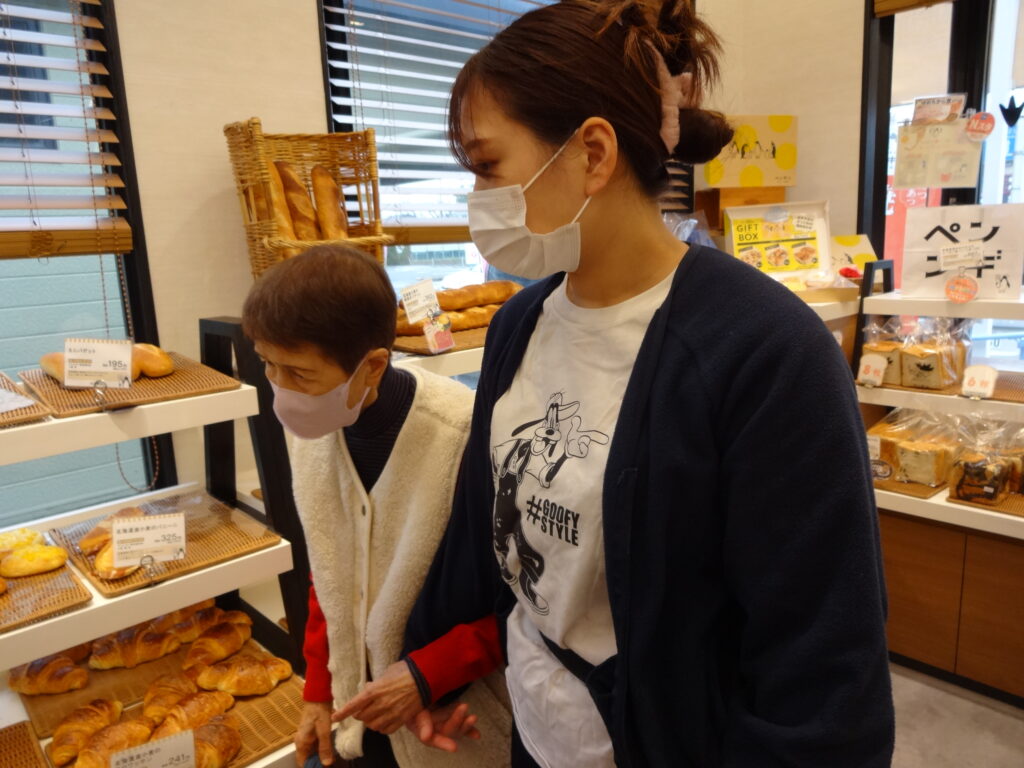 近所のパン屋さんに、大のパン好きのご利用者様をお連れし、