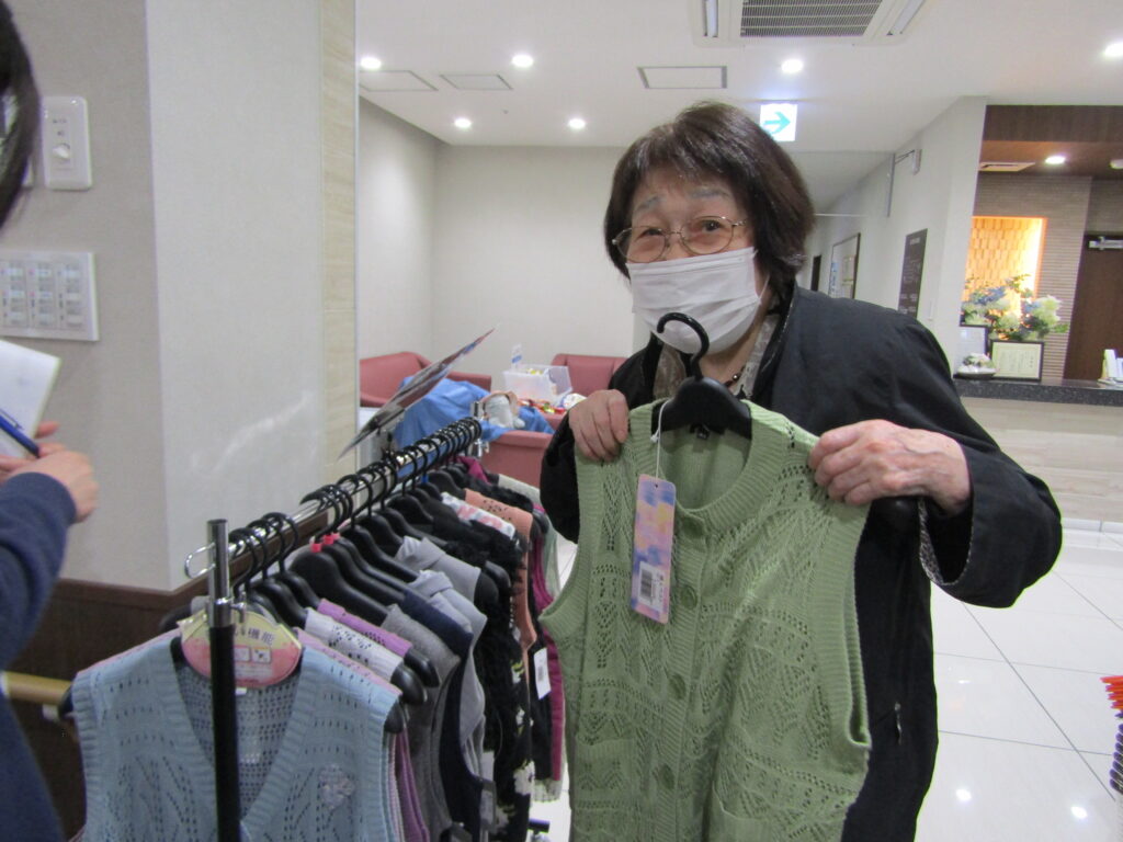 春夏物の洋服を手にとられ「私に似合うかしら…」などと楽しみながらお買い物をされました。