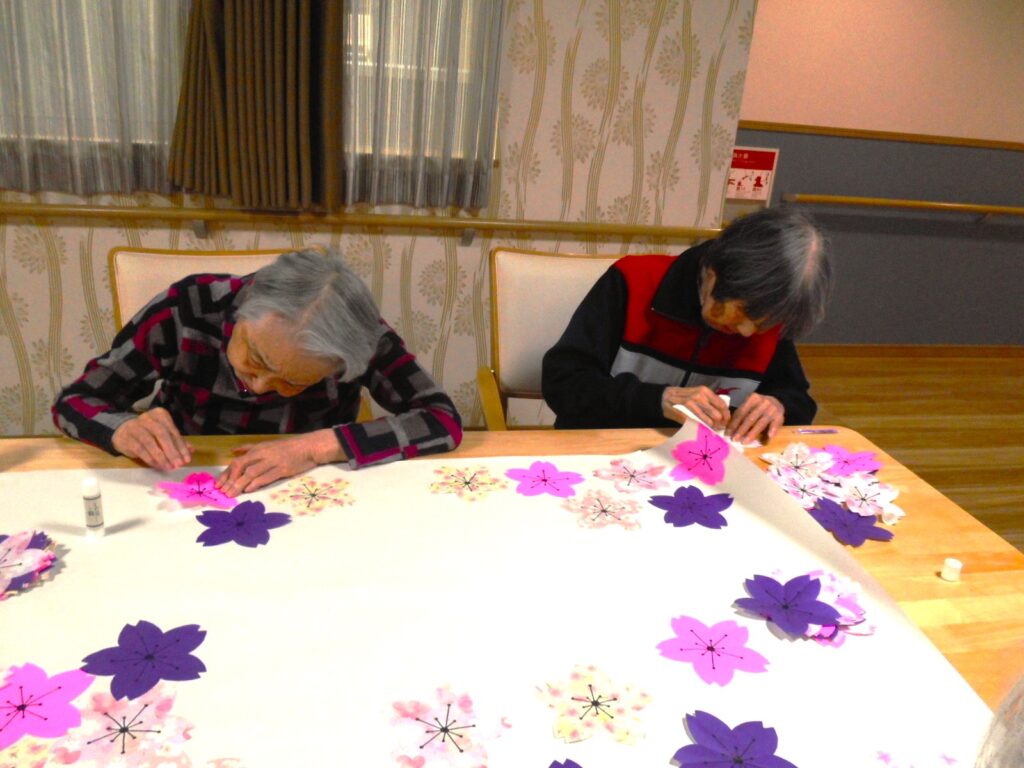 ホーム内では色とりどりの桜を作ったりと、